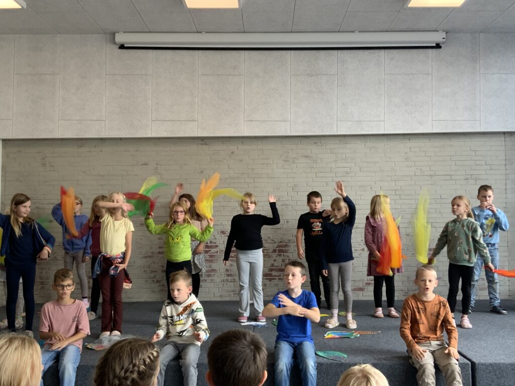 Vor dem Ferienbeginn trafen sich wieder alle Klassen in der Aula, um gegenseitig Lieder, Gedichte und Tänze aus dem Unterricht der vergangenen Wochen zu präsentieren. Viele Kinder waren etwas aufgeregt vor und dann glücklich nach der Vorführung.