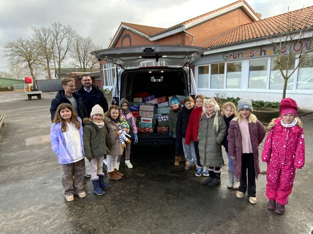 Mit über 40 Weihnachtspäckchen haben sich die Kinder unserer Schule an der diesjährigen Aktion „Weihnachts-Päckchen-Konvoi“ beteiligt. Die LKWs fahren Ende November in mehrere osteuropäische Länder, um den Kindern dort eine große Freude zu bereiten. Vielen Dank für die Spenden!